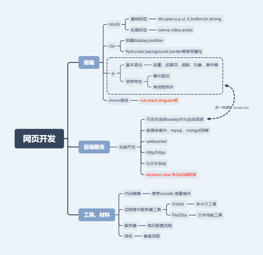 nodejs 实际上也是JavaScript,语法跟前端使用的js是一样的。只是运行的底层环境不同,所以提供的底层接口也不同。可以理解成同一个工具,在前端和后端环境里都能自如使用。而学习过js语法后的我们,可以直接查看nodejs的文档,一边编写一边查阅即可。